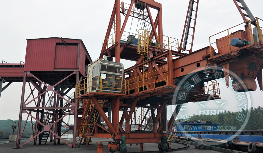 濟寧市散料物流內河碼頭,碼頭布置多臺固定式抓斗和一臺1200t/h圓弧軌道裝船機,最大適用2000噸級散貨船,該煤炭裝船機可以做到無撒漏、無揚塵、效率高、能耗低、維修少等特點。